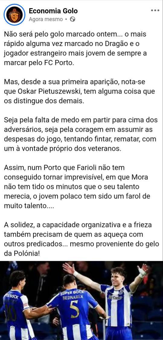 Hoje às 14:54 #1,441 RXavier10 Tribuna Presidencial 25 Maio 2013 13,718 6,044 Ofensivamente, há um Porto com o Oskar e outro sem o Oskar. Acho que é o melhor elogio que se pode fazer a um miúdo de 17 anos. Reações: pedromreis95 e Panda Azul e Branco