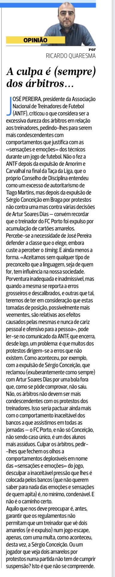 Isto também é verdade.O SC é muito criticado aqui, mas se os restantes membros da estrutura de futebol do clube tivessem metade da sua competência, rigor e atitude, se calhar este ano estaríamos a lutar por um tetra campeonato.