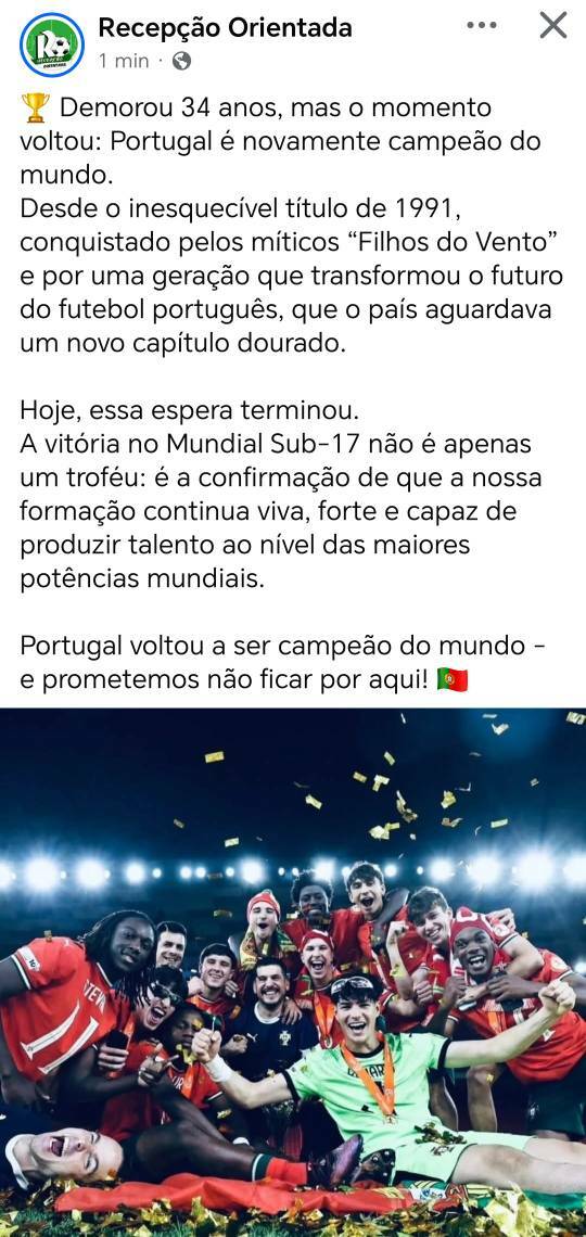 “Parabéns a Portugal, parabéns aos rapazes, mas sobretudo parabéns ao Benfica que tem feito um trabalho notável nas camadas jovens. Só o Benfica tem aqui 9 jogadores, está muito à frente em Portugal nesta matéria.”