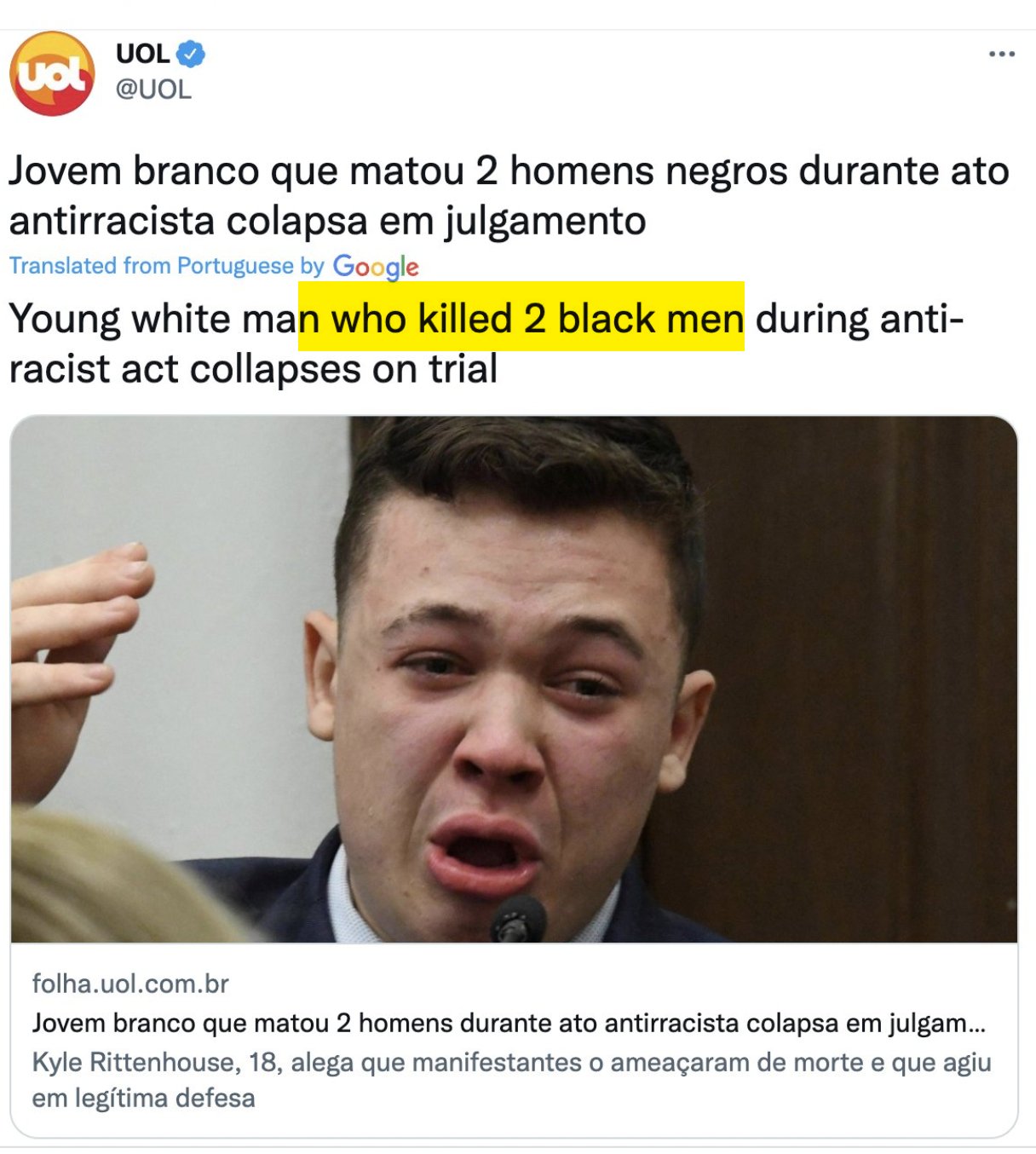 Essas correções foram feitas pelos directores supremacistas brancos. Coitados dos pobres estagiários progressistas e wokistas... Estão a ser censurados pelos fiéis seguidores do Trump e Bolsonaro.O caso foi colocado dessa maneira, o puto tinha que ser o supremacista branco que matou os negros, há uma comunicação social que vive disso.