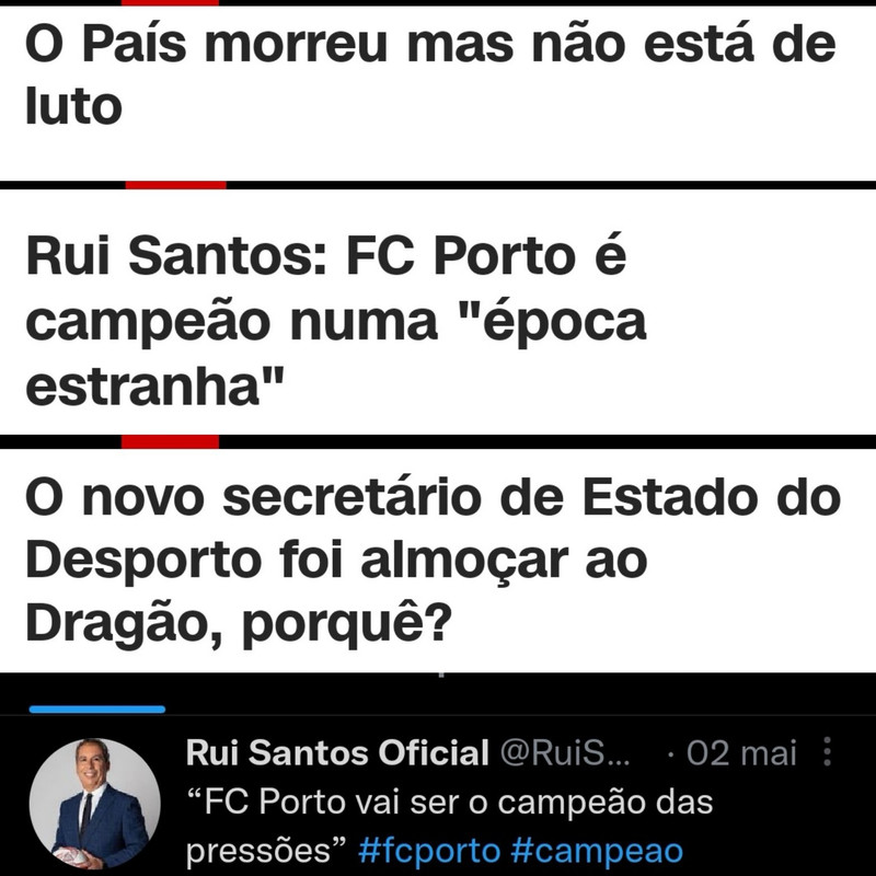 Eu acho que o presidente dorme bem com a opinião do Rui Santos.Ansioso para chegar a Maio e ser assim como foi em Maio de 22