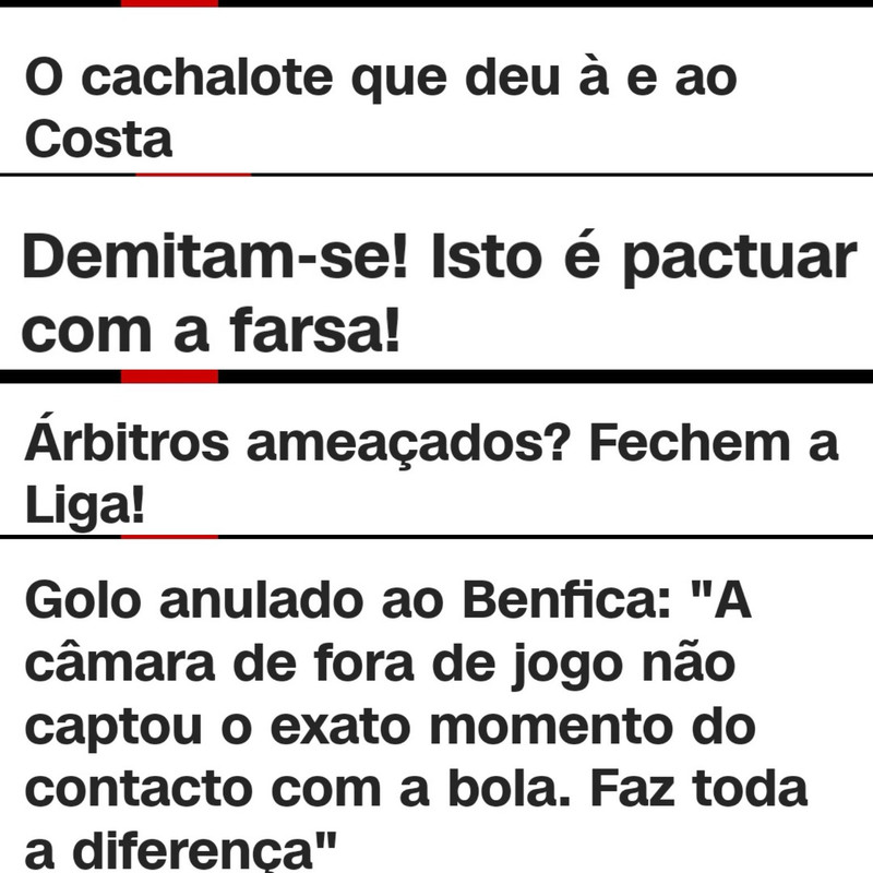 eles podem fazer os titulos que quiserem ou truncar o que quiserem mas só um idiota pode pensar que vamos á frente por causa da arbitragem... até agora não houve um jogo que fossemos beneficiados daqueles erros que decidem jogos e pelo contrario ja fomos prejudicados com penalties como o do Samu com Nacional com resultaodo em 0-0 claro e obvio, a expulsão do Martim que chega tarde a bola porque sofre falta antes e é agarrado em Arouca que nos obrgiou a jogar com menos 1 toda a 2a parte ou o roubo com o Benfica quando logo ao 1º minuto deviamos ter ficado a jogar com mais um jogador.Visualizar anexo 41513