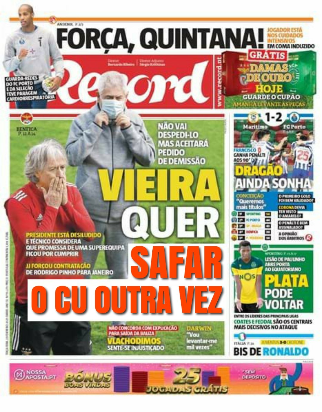 O regime de Vieira é uma cafila de mafiosos, um esquema de corrupção extenso sobre o qual teem q estar sempre os holofotes.Claro que nos temos que preocupar com os filhos da puta, ainda não viste o que o Rui Pinto disse na semana passada?