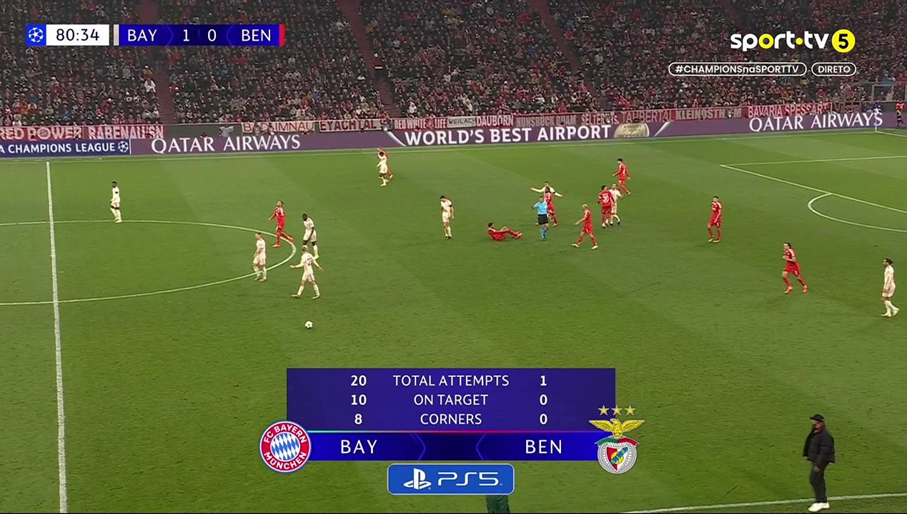 O Bayern amassou o Benfica do início ao fim do jogo no Allianz Arena e venceu, mas por apenas 1-0. Golo de cabeça de Musiala, a 22 minutos do fim, permitiu superar a retranca.”