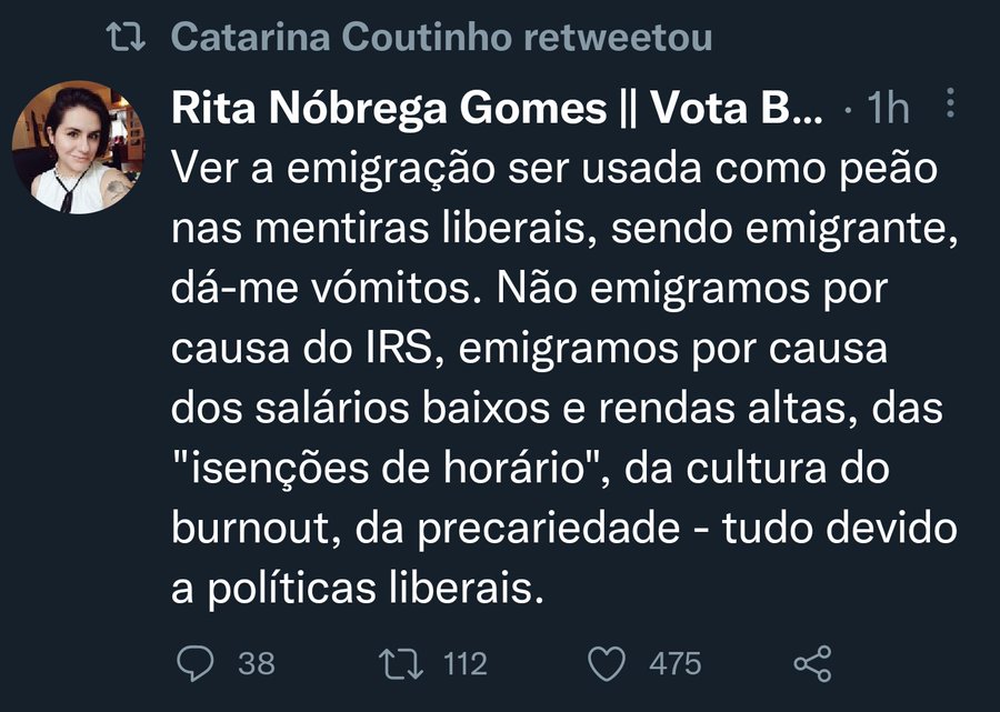 Por acaso gosto do Aliança.Tens o Volt. Tens o Aliança. Tens o Nós Cidadãos. Tens alternativas.![]()