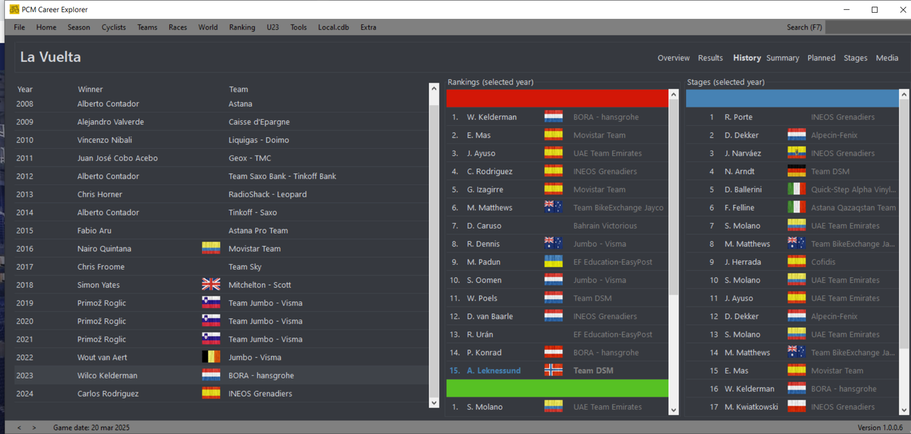 Para não danificar o ficheiro limitei-me a reduzir o prestigio da competição. O que aconteceu e acho estranho é que o prestigio das outras provas nacionais mas o da Volta a Portugal, por alguma razão que não consigo explicar, fica sempre no 20.