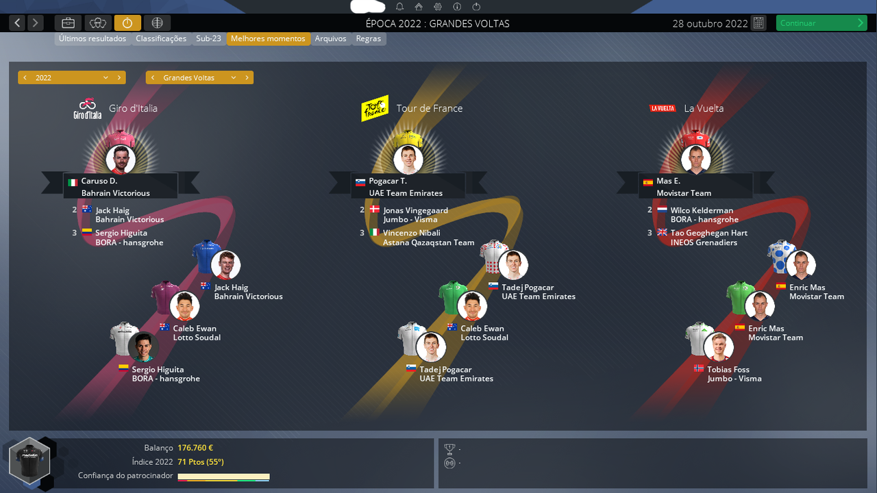 ÓSCAR SEVILLA - Lenda. A palavra para este corredor tem de ser especial até porque estava na equipa desde a sua fundação(2017), na longinqua Colômbia, fora da sua zona de conforto, sem nada para provar a ninguém. O ciclismo colombiano agradece.