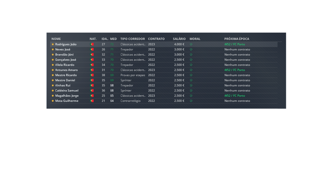 L: É cedo para falar sobre nomes. A média de idades não é problema, problema seria se não houvesse qualidade. Acredito que o habitual curto calendário português ajude a isso também. De qualquer das maneiras, o nosso planeamento irá muito mais longe daquilo que são as provas em Portugal.