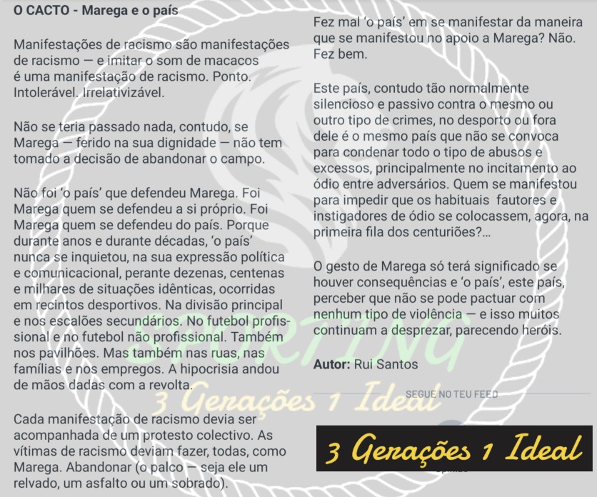 Zeus disse:O cartilheiro racista fecha o programa a dizer: "a melhor forma de combater o racismo é sermos solidários para com quem é vítima de racismo."