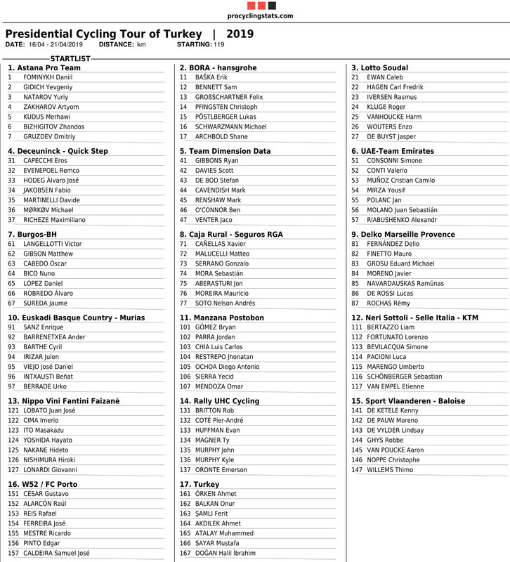 Isto é uma prova WT na categoria, porque ao nível do elenco temos provas 2.1 e HC com mais equipas WT que esta.Ainda assim temos um bom elenco, principalmente de sprinters. Para a geral diria que temos sérias hipóteses de colocar alguém no top 10. Temos todas as condições para brilhar.