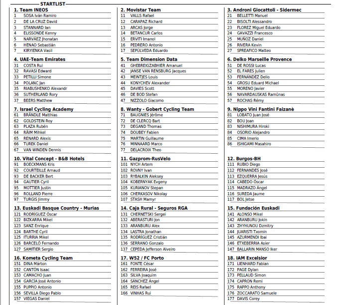 Mais Informações sobre a Prova: https://www.vueltaburgos.com/es/https://twitter.com/VueltaABurgoshttps://www.facebook.com/VueltaABurgos/https://www.instagram.com/vueltaburgos/https://www.youtube.com/channel/UC-HyZnxcqxMHUauvItM3WAQLista de equipas participantes (18): World Tour: . Movistar Team (Espanha)