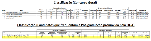 É importante salientar que pelo caminho dos “pobres coitados”, o nosso amigo não tinha conseguido ser admitido como delegado da Liga, uma vez que obteve 84,30 pontos e o último estagiário a entrar conseguiu 87,30. Abençoados 3600€.